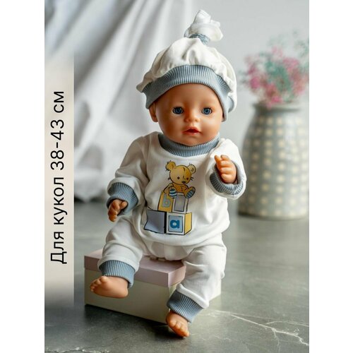 Одежда для куклы Беби Бон (Baby Born) 43см , Rich Line Home Decor, ИП-Х-777-1_Белый-сер-голуб-мишка-с-шапкой
