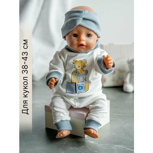 Одежда для куклы Беби Бон (Baby Born) 43см , Rich Line Home Decor, ИП-Х-992_Белый-серо-голубой-мишка-с-повязкой