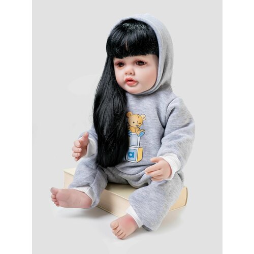 Одежда для куклы Реборн (Reborn) 55см , Rich Line Home Decor, ИП-X-41_Светло-серый-белый-мишка