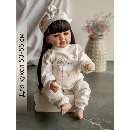 Одежда для куклы Реборн (Reborn) 55см , Rich Line Home Decor, ИП-X-44_Белый-динозавр-с-шапкой