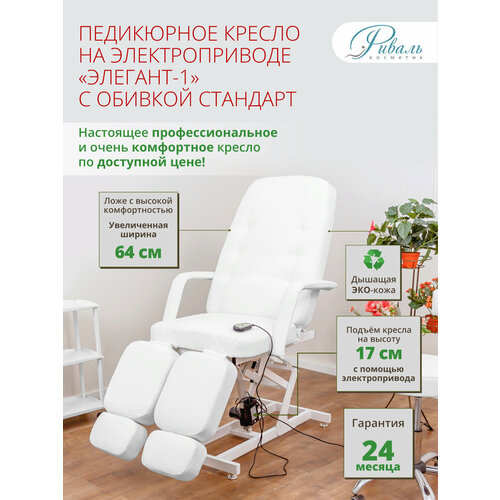 Педикюрное кресло на электроприводе "Элегант-1" с белой обивкой Стандарт/кресло для педикюра, для тату