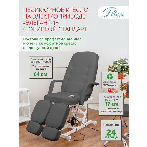 Педикюрное кресло на электроприводе "Элегант-1" с серой обивкой Стандарт/кресло для педикюра, для тату