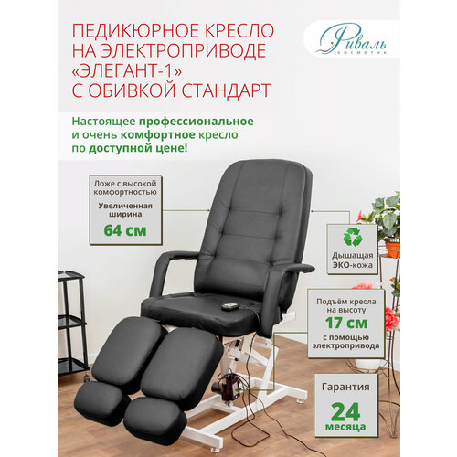 Педикюрное кресло на электроприводе "Элегант-1" с черной обивкой Стандарт/кресло для педикюра, для тату