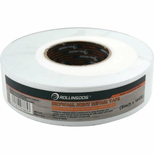 ROLLINGDOG Лента армирующая для ремонта швов гипсокартона, 48мм x 50м, нетканый материал, 81173