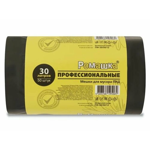 Мешки для мусора, 30 л, 50 шт, "Профессиональные", черные, ромашка (48х57,5 см/10 мкН) (ПФ-30/50/12)