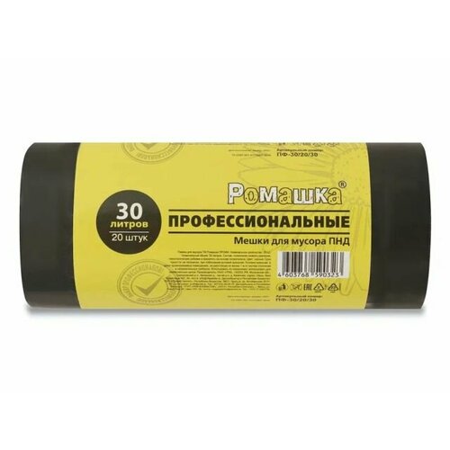 Мешки для мусора, 30 л, 20 шт, "Профессиональные", черные, ромашка (48х57,5 см/10 мкН) (ПФ-30/20/30)