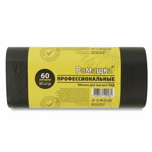 Мешки для мусора, 60 л, 30 шт, "Профессиональные", черные, ромашка (58х68 см/10 мкН) (ПФ-60/30/20)