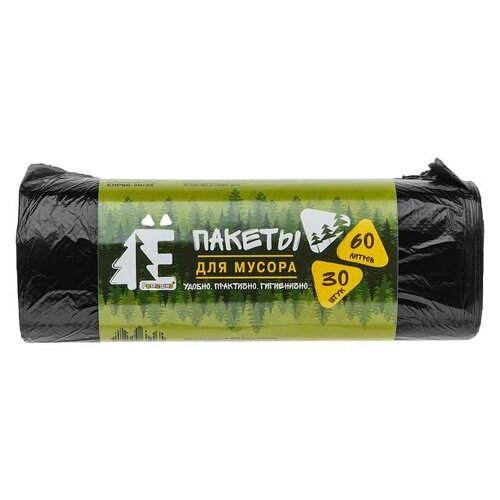 Мешки для мусора, 60 л, 30 шт, "Е-Ромашка", черные, ромашка (58х68 см/ 6 мкм) (ЕЛР60-30/35)