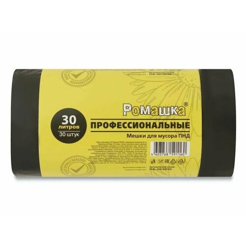 Ромашка Мешки для мусора 30 л, 30 шт, черные - 12 упаковок