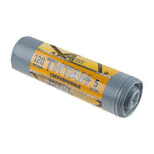 Мешки для мусора, 120 л, 5 шт, "Титан", серо-черные, ромашка (70х110см/80мкм) (ТТ-ВР-120/5/14/С)