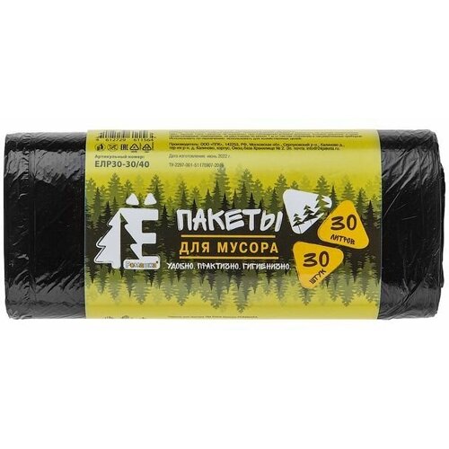 Мешки для мусора, 30 л, 30 шт, "Е-Ромашка", черные, ромашка (48х57,5 см/ 5,6 мкм) (ЕЛР30-30/35)