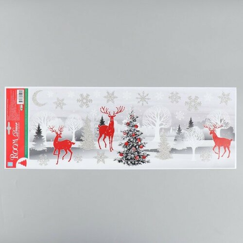 Декоративная наклейка Room Decor "Новогодняя ночь в лесу" 21х53 см