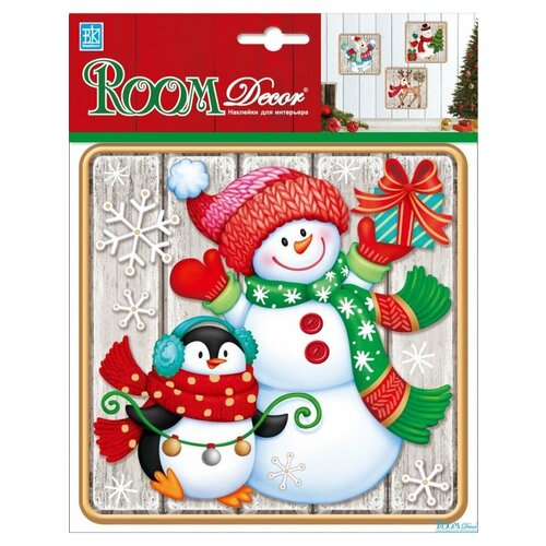 Новогодняя наклейка "Снеговик с пингвином - мини" PLX3206
