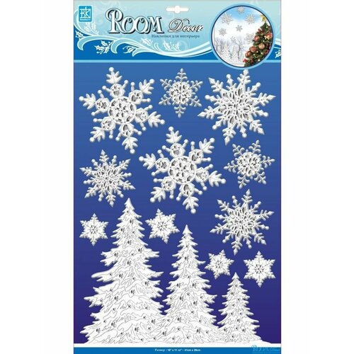 Room Decor Объёмная наклейка Room Decor "Снежинки серебро", 14х21 см