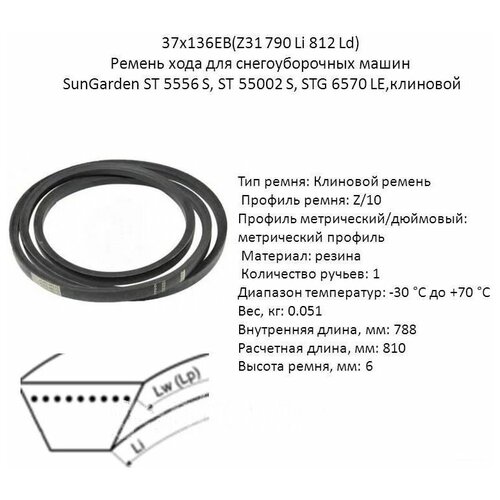 Ремень привода хода 37x136EB для снегоуборщиков SunGarden ST5556S, ST55002S, STG6570LE, Champion ST766BS, Patriot PRO-750, Сибирь 67СЕ, Сибирь 62