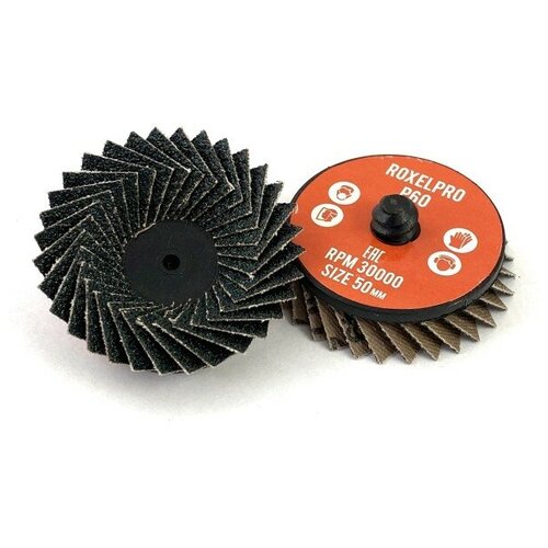 Круг шлифовальный RoxelPro лепестковый торцевой быстросъёмный QCD 50 мм, цирконат, Р60
