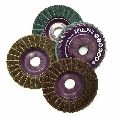 Круг зачистной RoxelPro Круг шлифовальный лепестковый торцевой для болгарки, нетканый 115х22 мм, Very Fine