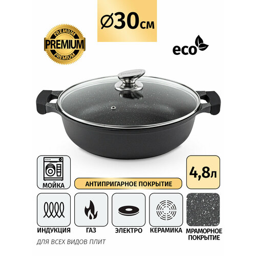 Сотейник с крышкой от бренда Royalty Line. Антипригарное покрытие. Объем 4,8 л. Для всех видов плит.
