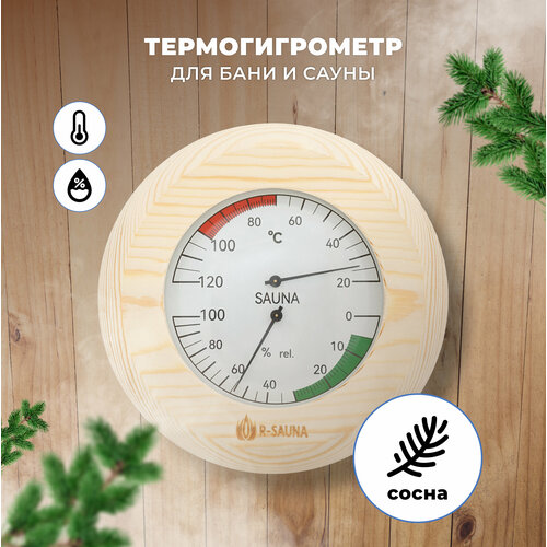 Термогигрометр для бани и сауны R-SAUNA, сосна, банная станция