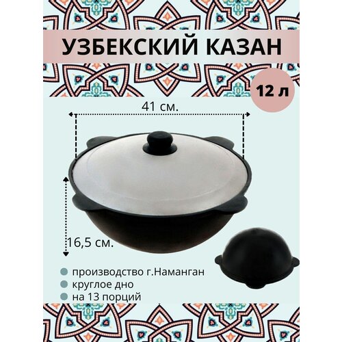 Казан узбекский чугунный с крышкой, круглое дно, 12 литров