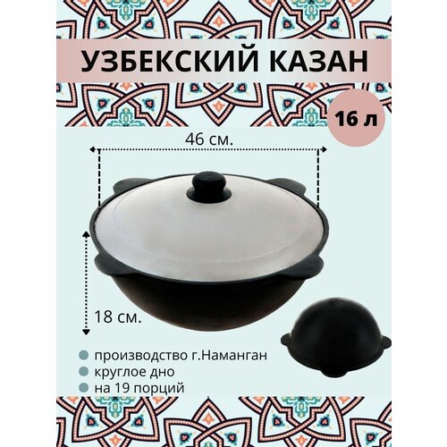 Казан узбекский чугунный с крышкой, круглое дно, 16 литров