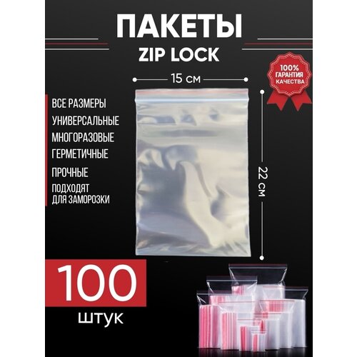 Зип пакеты упаковочные Zip Lock, 15х22 см, для заморозки 100 шт