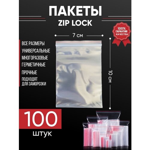 Зип пакеты упаковочные Zip Lock, 7х10 см, для заморозки 100 шт