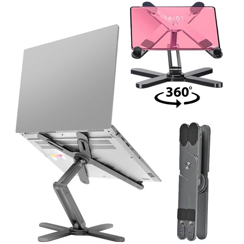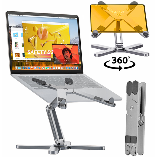Подставка для ноутбука и планшета Safety DJ складная алюминиевая с вращением на 360 градусов, регулировкой высоты и угла наклона (серебристая)