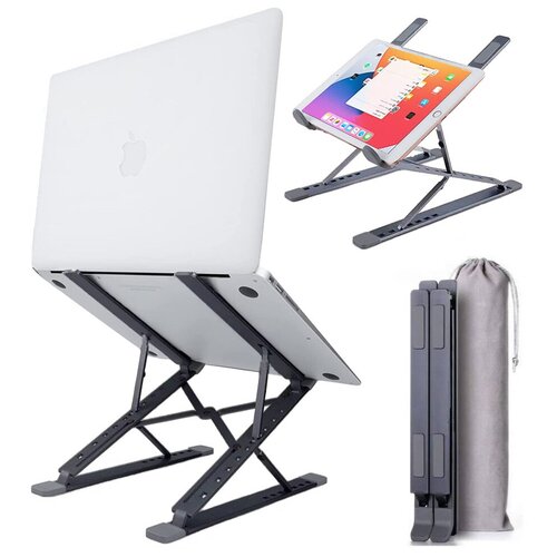 Подставка для ноутбука и планшета Safety DJ складная алюминиевая портативная с регулировкой высоты и угла наклона (тёмно-серая)