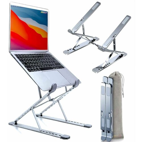 Подставка для ноутбука и планшета Safety DJ складная алюминиевая портативная с регулировкой высоты и угла наклона (серебристая)