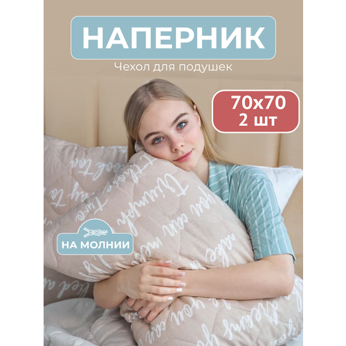 Чехол/наперник 70х70, 2шт, защитный стеганый для подушки на молнии, хлопок 100%
