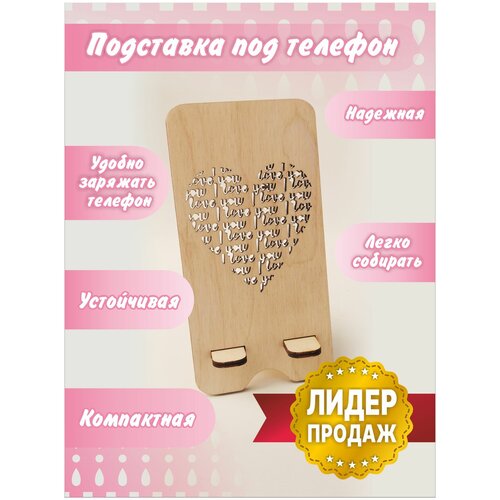 Подставка для телефона из дерева С днем Святого Валентина/ Универсальный настольный держатель. Ручная работа