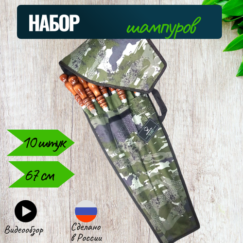 Набор шампуров 67 см 10 штук SHAMPURMANIA подарочный с деревянной ручкой в чехле Камуфляж