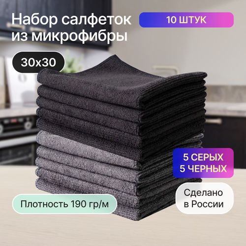 Салфетки из микрофибры 10 шт 30х30 черные, серые