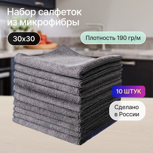 Салфетки для уборки из микрофибры 10 шт 30х30 серые