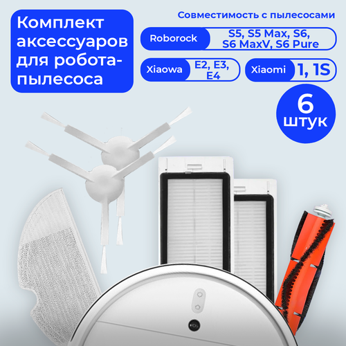 Комплект фильтров, щеток для робота-пылесоса XIAOMI 1 1S , XIAOWA E2 E3 E4, Roborock S50 S51 S52 S53 S54 S55 S5 S5MAX S6 S6PURE S6MAXV.