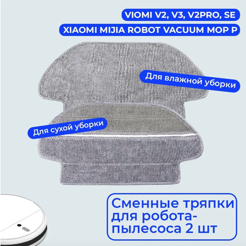 Сменная фибра тряпка для робота-пылесоса Xiaomi MI Robot LDS Vacuum Mop P Viomi V2, V2Pro, SE, V3 2шт.