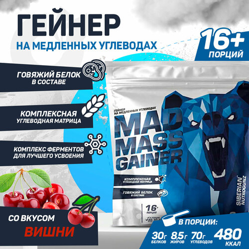 Siberian Nutrogunz Mad mass gainer 2000 g (Вишня), Гейнер, Для набора массы, Для роста мышц, 2000 грамм