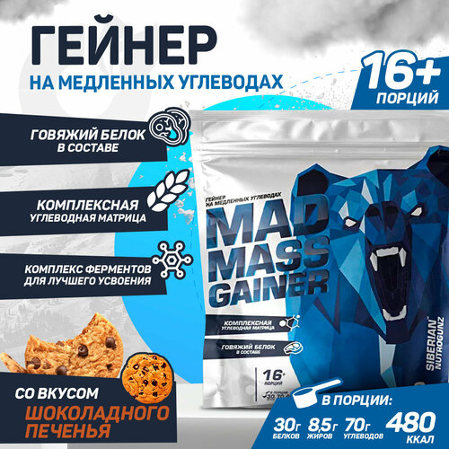 Siberian Nutrogunz Mad mass gainer 2000 g (Шоколадное печенье), Гейнер, Для набора массы, Для роста мышц, 2000 грамм