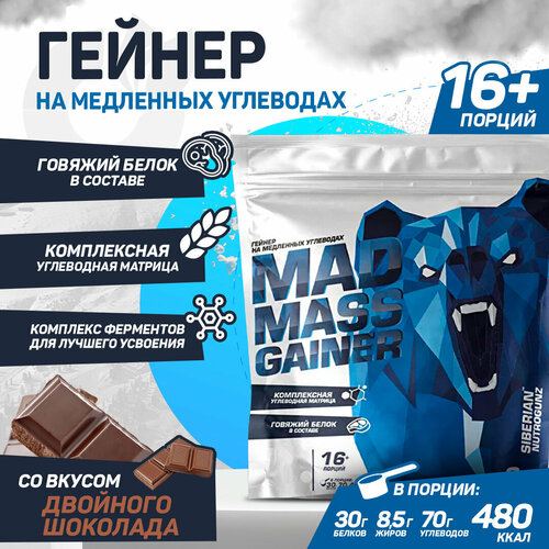 Siberian Nutrogunz Mad mass gainer 3600g (Двойной Шоколад), Гейнер для набора массы, для роста мышц, Высокобелковый, 3600 грамм