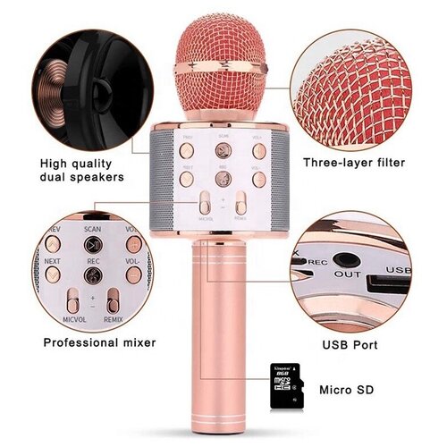 Микрофон-караоке / Микрофон-колонка/ Караоке беспроводной Детский микрофон с Bluetooth колонка золотой