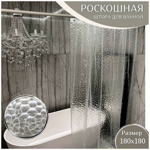 Штора для ванной комнаты с 3D эффектом прозрачная, штора в ванну 180х180, шторка водонепроницаемая, штора с 3д эффектом