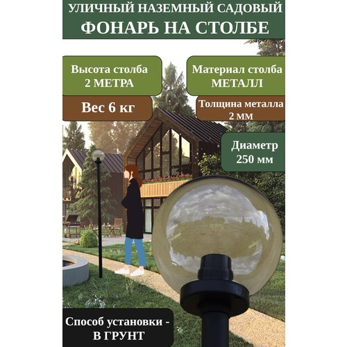 SkyGarden Уличный наземный садовый фонарь на столбе R250B CLEAR, металл, высота 2 м, цоколь E27, цвет прозрачный