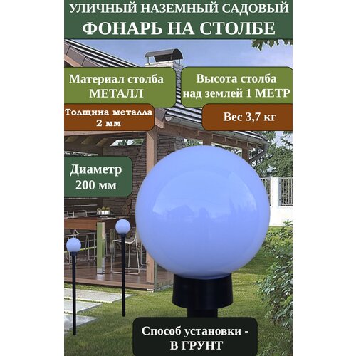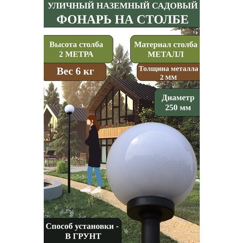 SkyGarden Уличный наземный садовый фонарь на столбе R250В OPAL, металл, высота 2 м, цоколь E27, цвет молочный