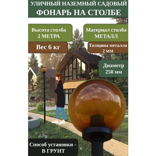 SkyGarden Уличный наземный садовый фонарь на столбе R250B BRONZE, металл, высота 2 м, цоколь E27, цвет бронзовый