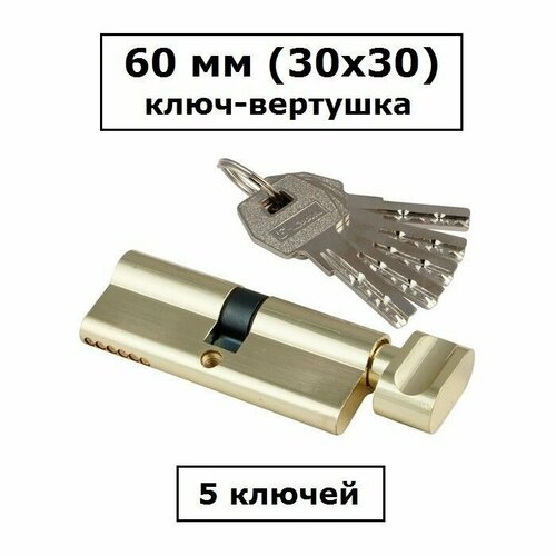 Личинка замка 60 мм (30х30) с вертушкой и перфоключами золото цилиндровый механизм S-Locked 402 Standart