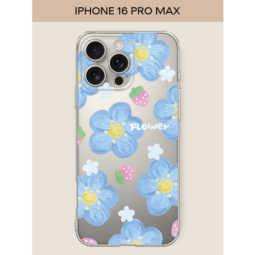 Силиконовый чехол "Цветы и клубники" на Apple iPhone 16 Pro Max / Айфон 16 Про Макс, прозрачный