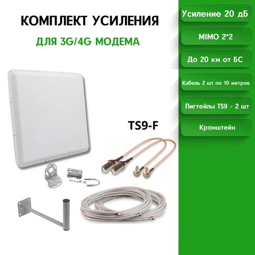 Усилитель интернет сигнала 2G/3G/WiFi/4G MIMO 20 dBi TS9