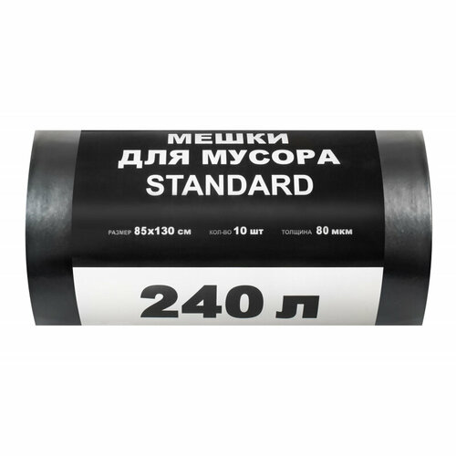Standard Мешки для мусора ПВД STANDARD 240л 80мкм 10 шт/рул черные 85х130см