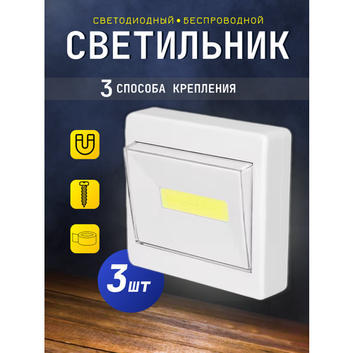 Беспроводной настенный светильник на батарейках в шкаф с выключателем Лампа для гардероба на батарейках 3шт